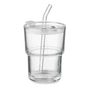 Szklany kubek ze słomką 400ml | MO-MO2502-22