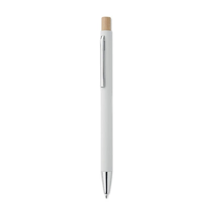 - Aluminiowy długopis z recyklingu. Srebrna końcówka i klip. Niebieski tusz.