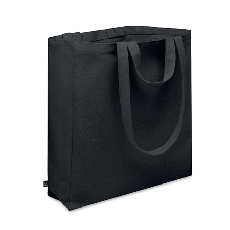 - Torba zakupowa lub plażowa z polibawełny z recyklingu (70% bawełna z recyklingu, 30% poliester z recyklingu) z krótkimi i długimi uchwytami. 380 gr/m².