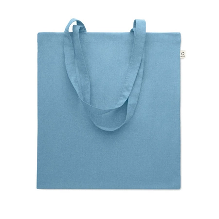 Bawełniana torba na zakupy z prekonsumenckiego recyklingu (70% bawełny z recyklingu i 30% RPET) z długimi uchwytami. 140 gr/m². Ten produkt może się kurczyć po zadrukowaniu.