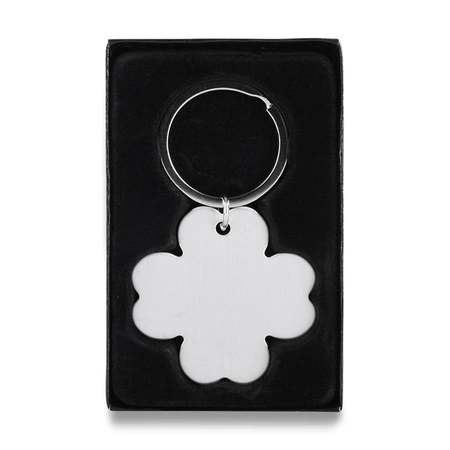 - Wykonany ze stali nierdzewnej brelok w kształcie koniczynki. Pakowany w czarne opakowanie upominkowe.