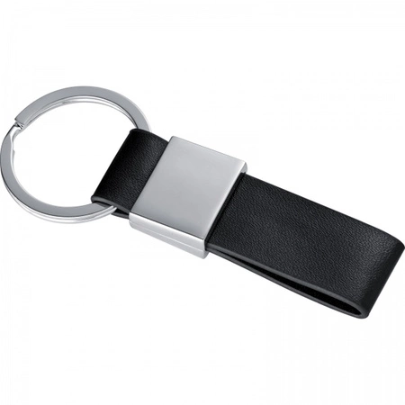 - Brelok z metalu i skóry syntetycznej.