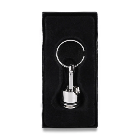 - Metalowy brelok w kształcie tłoka samochodowego. Pakowany w czarne opakowanie upominkowe.