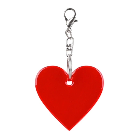 - Brelok z w kształcie serduszka z powłoką odbijającą światło, z karabińczykiem.