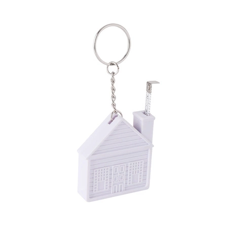 - Wykonany z plastiku brelok w kształcie domku z miarką 2 metrową. Podziałka w centymetrach i w calach.