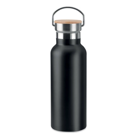 - Termos ze stali nierdzewnej z podwójnymi ściankami, 500 ml. Pokrywka z bambusa, z uchwytem. Znakowanie sublimacją jest możliwe tylko na białych produktach. Szczelna. Bambus jest produktem naturalnym, dlatego mogą wystąpić nieznaczne różnice w kolorze, wzo