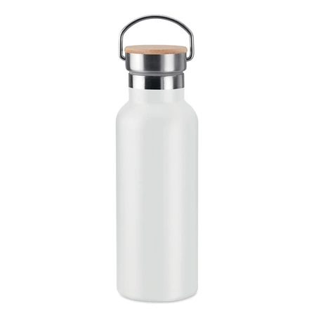 - Termos ze stali nierdzewnej z podwójnymi ściankami, 500 ml. Pokrywka z bambusa, z uchwytem. Znakowanie sublimacją jest możliwe tylko na białych produktach. Szczelna. Bambus jest produktem naturalnym, dlatego mogą wystąpić nieznaczne różnice w kolorze, wzo