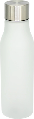 Butelka o pojemności 550 ml, wykonana z przyjemnego w dotyku plastiku z gumowym wykończeniem i metalową zakrętką.