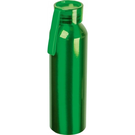 - Butelka wykonana z aluminium pochodzącego z recyklingu, posiada półprzezroczystą zakrętkę z uchwytem do przenoszenia. Pojemność 600 ml.