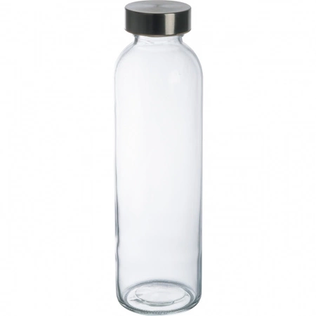 Szklana butelka do picia o pojemności 600 ml z pokrywką ze stali nierdzewnej.