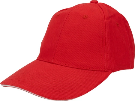 - Bawełniana, 6-panelowa czapka z daszkiem typu Sandwich, wykonana z bawełny czesanej wolnej od AZO (gramatura 260 g/m²), regulowana za pomocą metalowego zapięcia.