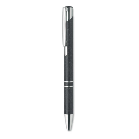 Długopis z przyciskiem 50% słomy pszennej 50% materiału ABS ze srebnym wykończeniem.Niebieski atrament.