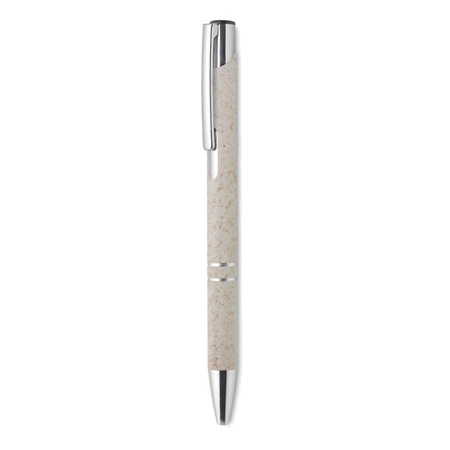 Długopis z przyciskiem 50% słomy pszennej 50% materiału ABS ze srebnym wykończeniem.Niebieski atrament.