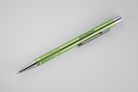 - Długopis BONITO to elegancki metalowy długopis w metalicznych kolorach z chromowanymi wykończeniami. Wykonany z aluminium, ozdobiony srebrnym pierścieniem i chropowatymi paskami. Wkład półżelowy 0,7 mm w kolorze niebieskim.