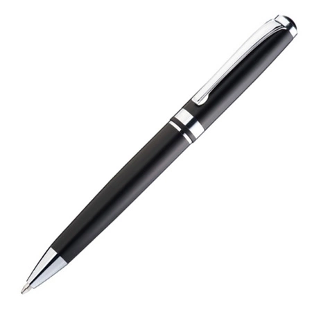 - Długopis metalowy CLAYTON z powłoką matową i ze srebrnymi wykończeniami. Długopis posiada wkład piszący na niebiesko.