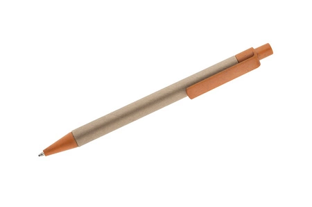 - Długopis TIKO z recyklingu papieru i słomy, ograniczający użycie tworzyw sztucznych. Automatyczny, z wkładem X20 w kolorze niebieskim. Prosty wzór.