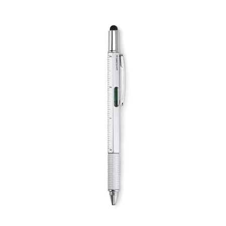 Przekręcany długopis z poziomicą, wykonany z ABS. Wyposażony w linijkę, rysik oraz podwójny śrubokręt gwiazdka i płaski. Czarny tusz.