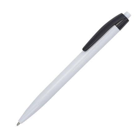- Plastikowy długopis wyposażony w niebieski wkład.