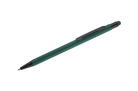 - Klasyczny, cienki długopis PRIM wykonany z aluminium pokrytego gumowaną powłoką typu soft touch. Na górze końcówka do obsługi ekranów dotykowych w kolorze dopasowanym do korpusu długopisu. Wykończenia w kolorze czarnym. Długopis automatyczny. Wkład typu X