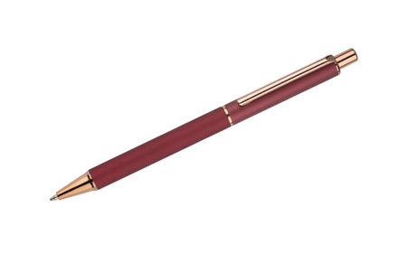 Elegancki matowy długopis z akcentami w różowym złocie. Metalowy korpus i klips. Idealny na prezent.