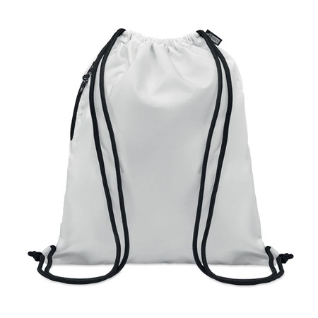 - Duży worek ze sznurkiem ściągającym z poliestru 300D RPET z boczną kieszenią zewnętrzną zapinaną na zamek.