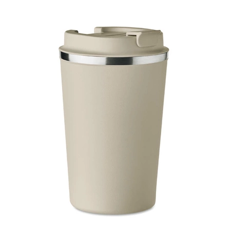 - Dwuścienny kubek ze stali nierdzewnej z pokrywką z PP. Pojemność: 350 ml. Szczelny.