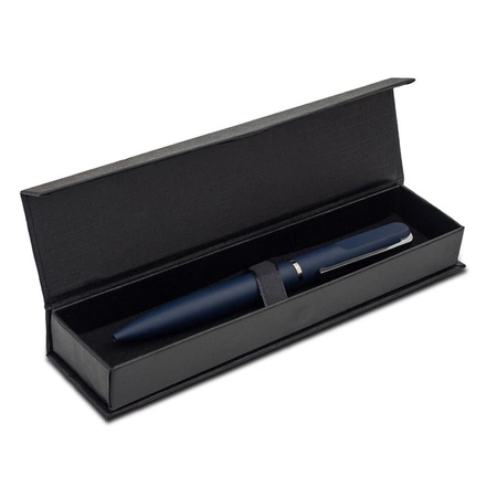 - Elegancki długopis o przyjemnym w dotyku, satynowym wykończeniu. Pakowany w upominkowe pudełko. Wkład w kolorze niebieskim.