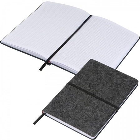 Notatnik A5 z filcową okładką, zakładką, zapięciem na gumkę i 192 stronami w kratkę.