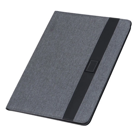 - Folder A4 wyposażony w szlufkę na długopis, 7 przegródek, 4 elastyczne paski, kieszonkę na telefon, podstawkę pod tablet oraz 30 stronicowy notes w linię. Całość wykonana z papieru i pvc.