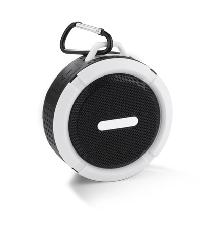 Mały głośnik z przyssawką o klasie wodoszczelności IPX4, idealny do turystyki. Możliwość głośnomówienia, odtwarzanie muzyki przez bluetooth lub kartę micro SD. Zestaw zawiera kabel do ładowania i karabińczyk. Moc wyjściowa 3W, czas pracy 1-1,5 godziny.