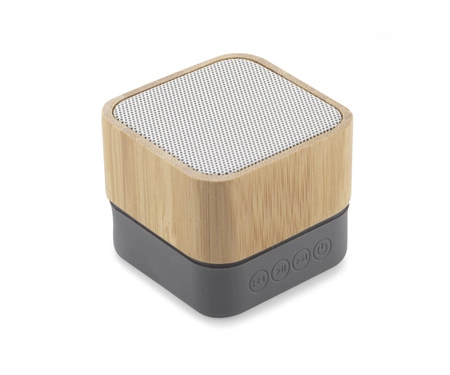 GROOVE to stylowy głośnik z obudową z bambusa i silikonu, wielokolorowym światłem, bluetooth 5.0 i slotem na kartę micro SD. Zgodny z normami UE, ma moc 3W i baterię na 2-godz. odtwarzanie.