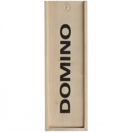 - Gra domino wykonana z drewna. Całość umieszczona w drewnianym pudełku.