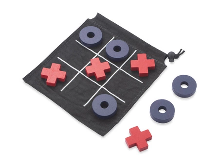 Kółko i krzyżyk to gra logiczna dla dwóch graczy, zapakowana w czarny woreczek z nadrukiem planszy. Idealna do podróży, ze względu na niewielkie rozmiary.
