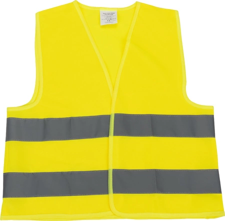 - Poliestrowa kamizelka odblaskowa dla dzieci z paskami odbijającymi światło klasy 2, certyfikat EN 1150:1999.