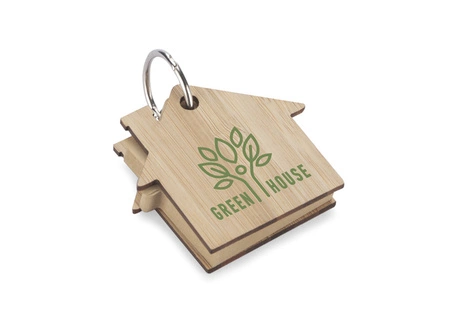 Karteczki samoprzylepne z brelokiem HOMA w kształcie domu, praktyczne i trwałe. Po zużyciu karteczek, bambusowe elementy przekształczają się w breloczek.