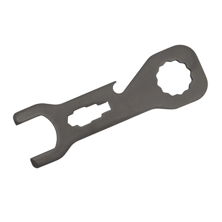 - Klucz wielofunkcyjny zawiera: klucze oczkowe, płaski i otwieracz do butelek.