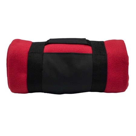 Polarowy koc o gramaturze 180 g/m² obszyty maszynowo, wyposażony w poręczny uchwyt do przenoszenia. Rozmiar po rozłożeniu: 120 x 150 cm. Doskonały na imprezy pod gołym niebem.