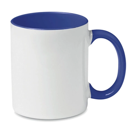 - Kubek ceramiczny o pojemności 300 ml pokryty specjalną warstwą pod sublimację, z kolorowym uchwytem i wnętrzem.
