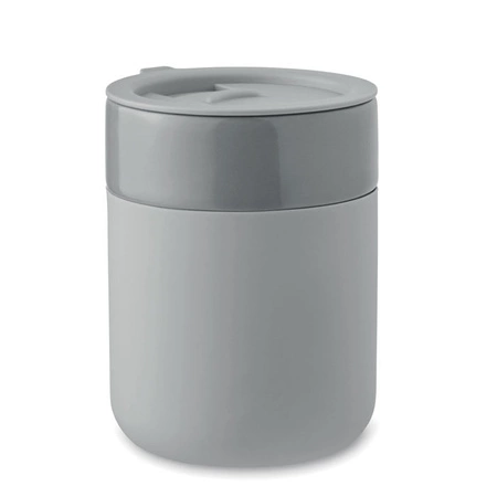 - Ceramiczny kubek ze zdejmowalnym silikonowym rękawem i pokrywką z PP. Pojemność: 330 ml.