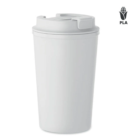 - Kubek z podwójnymi ściankami z kukurydzy PLA z pokrywką do picia z PP z wewnętrznym TPR. Pojemność: 350 ml.