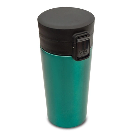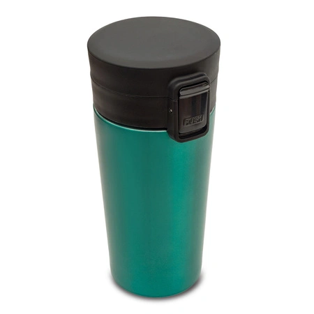 - Szczelny kubek izotermiczny o pojemności 350 ml. Dwie ścianki ze stali nierdzewnej, wewnątrz stal 18/8 o podwyższonej jakości. Próżnia pomiędzy ściankami zapewnia bardzo dobre właściwości termoizolacyjne. Utrzymuje temperaturę powyżej 40°C przez 10 godzin