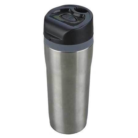 Szczelny kubek izotermiczny - termos o pojemności 350 ml. Dwie ścianki ze stali nierdzewnej, wewnątrz stal 18/8 o podwyższonej jakości. Rozkręcana pokrywka umożliwiająca jej dokładne umycie. Szczelne zamknięcie - leak proof zapobiega wyciekaniu płynów. Próżnia między ściankami kubka zapewnia parametry termosu. Zamknięcie typu open/close. Podstawa kubka z wodoodpornej gumy termoplastycznej TPR. Utrzymuje ciepło do 12 godzin. Możliwość dobrania dodatkowej opaski R00001.
