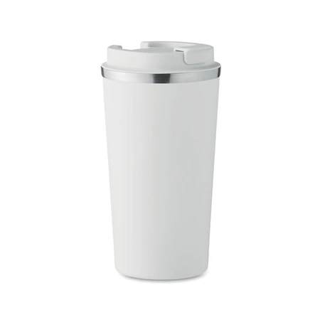 - Kubek z podwójnymi ściankami z recyklingowanej stali nierdzewnej (90% z recyklingowanej stali nierdzewnej i 10% ze stali nierdzewnej) i pokrywką z PP. Pojemność: 510 ml. Nie przecieka.