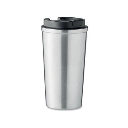- Kubek z podwójnymi ściankami z recyklingowanej stali nierdzewnej (90% z recyklingowanej stali nierdzewnej i 10% ze stali nierdzewnej) i pokrywką z PP. Pojemność: 510 ml. Nie przecieka.