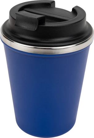 - Kubek z podwójnymi ściankami ze stali nierdzewnej, z zewnątrz z plastikową powłoką z materiału pochodzącego z recyklingu, o pojemności 350 ml, z zamykanym ustnikiem.