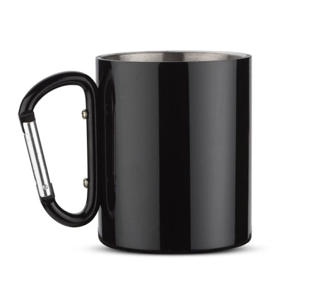 Praktyczny kubek podróżny 250 ml z podwójnymi ściankami zapewniającymi izolację ciepła. Wykonany ze stali nierdzewnej, odporny na korozję, z uchwytem w formie karabińczyka do łatwego przenoszenia. Idealny na wyprawy poza miasto.