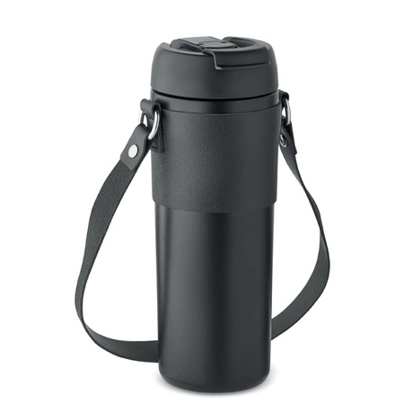 - Dwuścienny, malowany proszkowo kubek ze stali nierdzewnej z pokrywką z PP 2 w 1 i paskiem z PU. Szczelny. Pojemność: 700 ml.