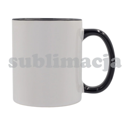 - Kubek ceramiczny o pojemności 330 ml, przygotowany pod nadruk sublimacyjny, z kolorowym uchwytem i wnętrzem.