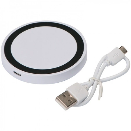 - Ładowarka indukcyjna umożliwiająca ładowanie smartfona bez użycia kabla. Produkt dostępny w kolorze białym.