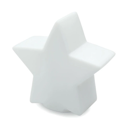 - Lampka LED w kształcie gwiazdki wykonana z PVC, zmieniająca kolory: biały, fioletowy, czerwony, żółty i zielony. 3 baterie LR44 dołączone.